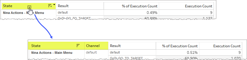 In both Graph and Table versions of this section, the metric data (Percent of Execution Count) describes a result based on the most granular dimension in the visualization. By default, State is the most granular dimension (not including Result), which makes the metric quantity a descriptor for a given result for each state.